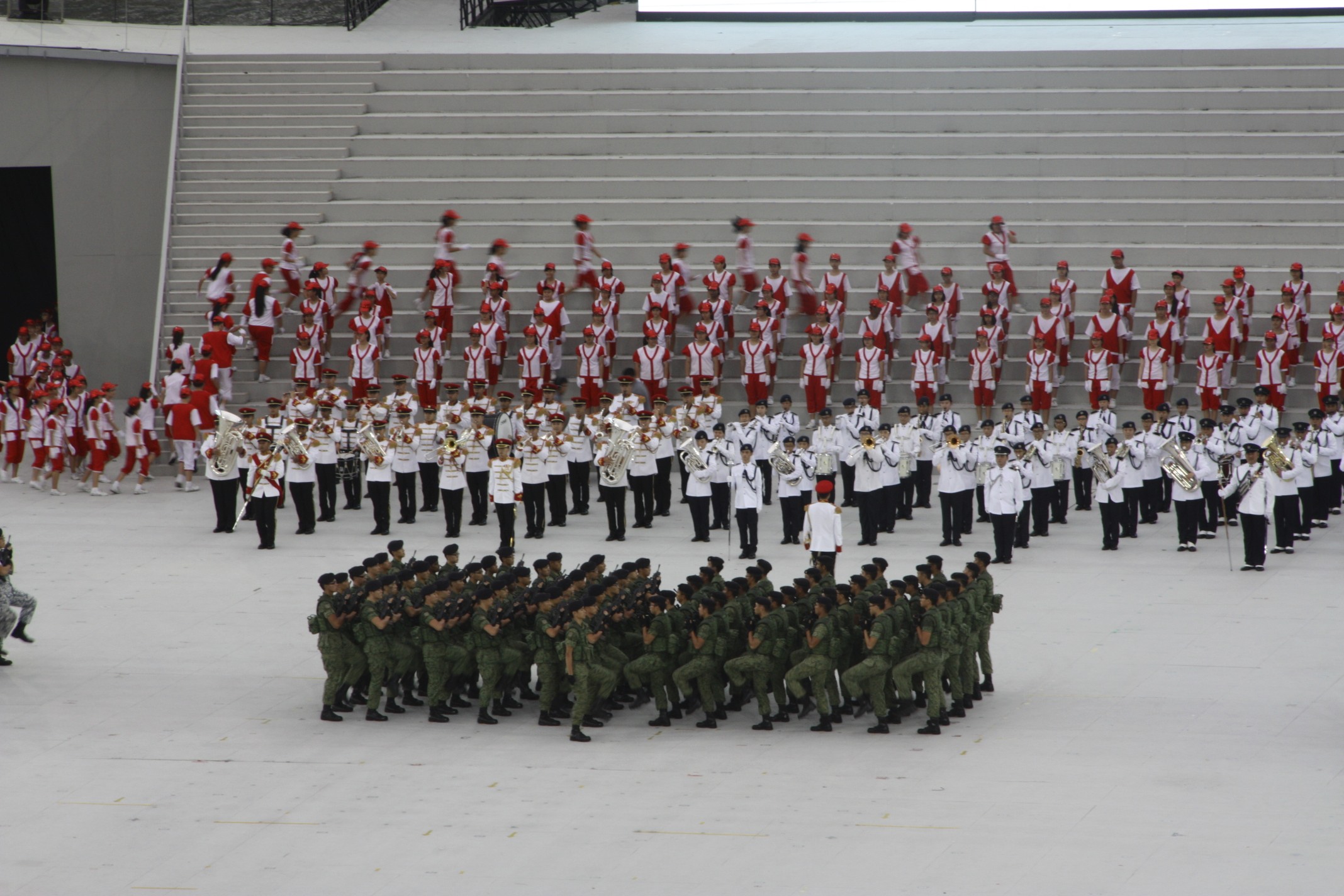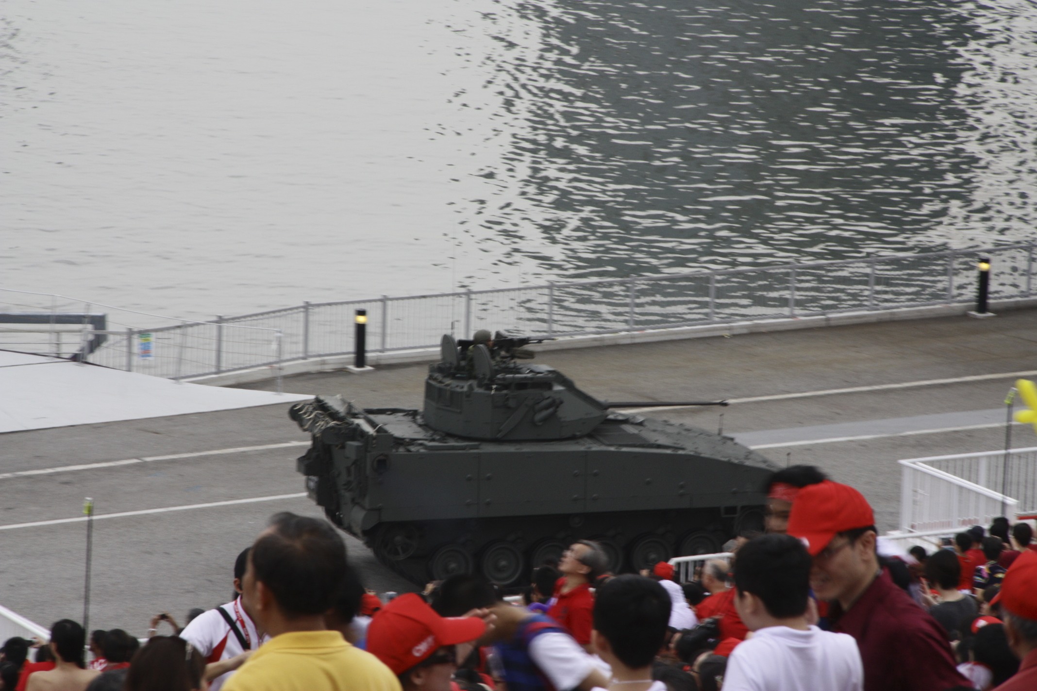 The pre-parade portion of NDP consisted of performances from several Singaporeans. This was a perfect way to entertain the crowd prior to the parade festivities. It was also a way for the hosts to introduce themselves to the audience and get the audience prepared, as audience participation is part of NDP. This years theme for the NDP was “Many Stories… One Singapore”. The lead in to the live televised portion of the festivities told the stories of Singaporeans from all walks of life. Explaining how each of these men and women overcame obstacles becoming better people, while also contributing to Singapore. The overall statement from these videos was you cannot take peace and prosperity for granted. An all to true statement in the world we live in today. After the lead in, a high school choir performed as the 99 members of parliament entered the grandstand. Parliament members in Singapore act as a bridge between the community and the government. Next it was time for the dynamic defense display.